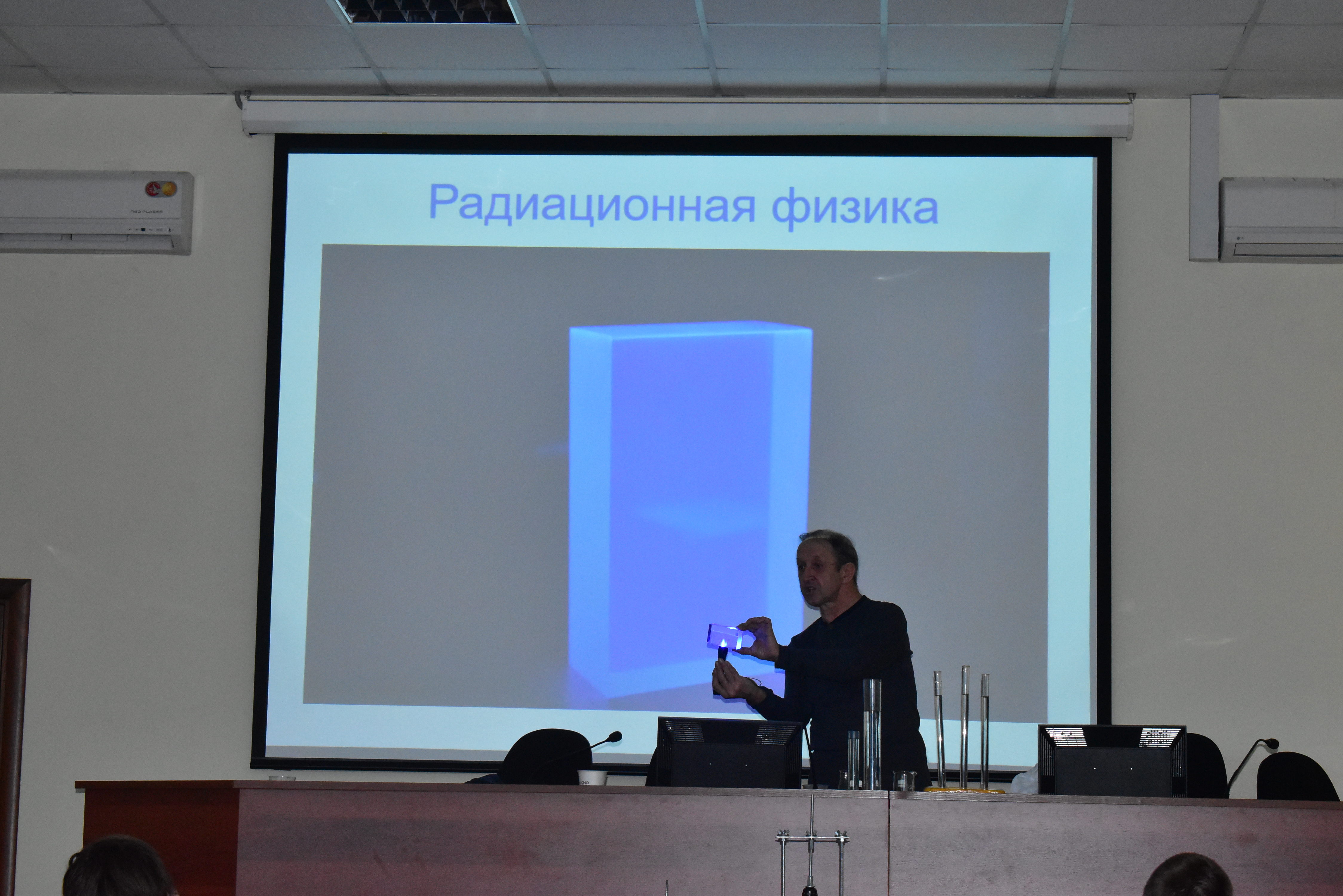 · Выступление Стенькина Юрия Алексеевича, кандидата химических наук, старшего научного сотрудника ОНЦ СО РАН. Юрий Алексеевич представил свои последние наработки в области создания люминофорных материалов на основе квантовых точек.